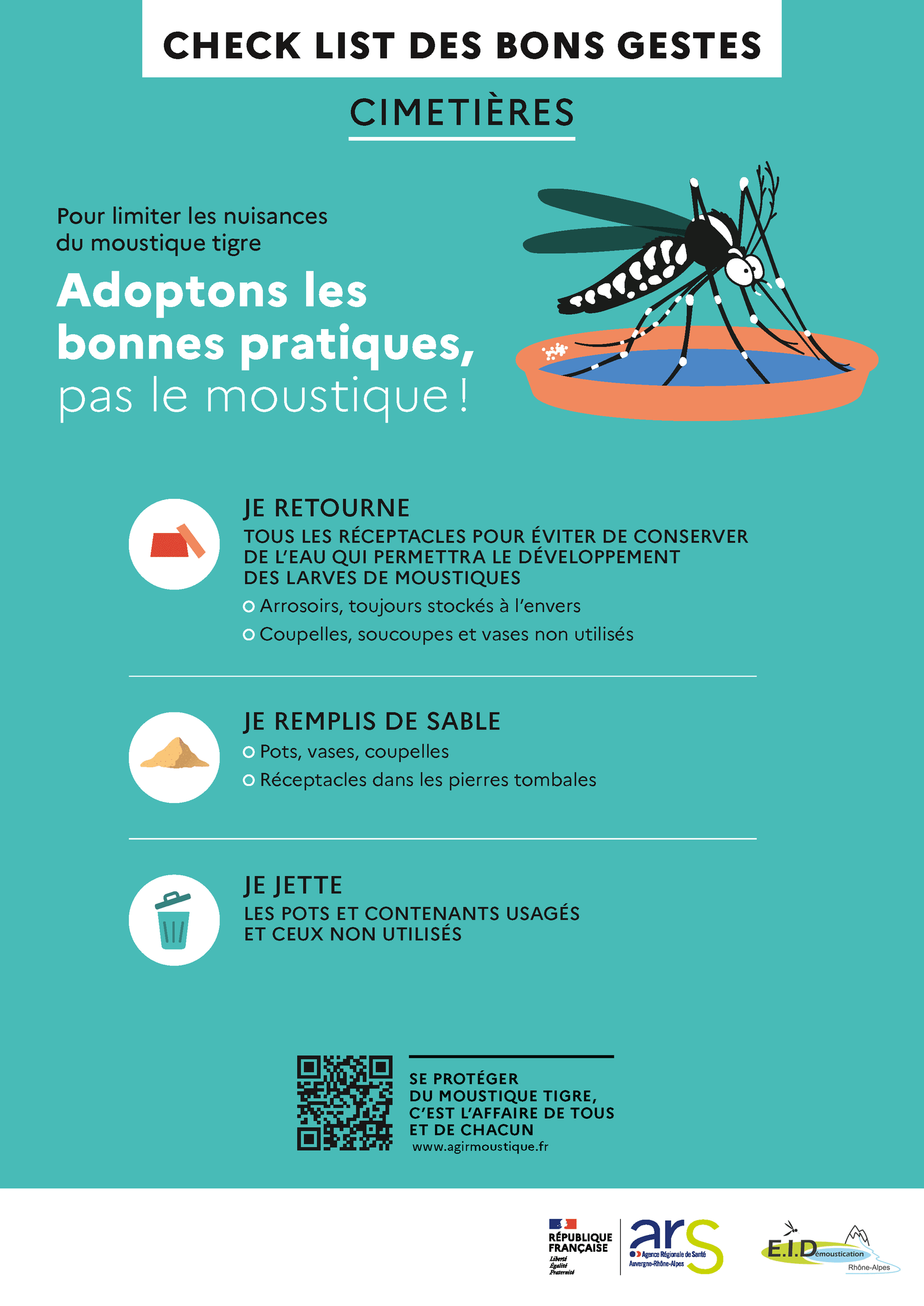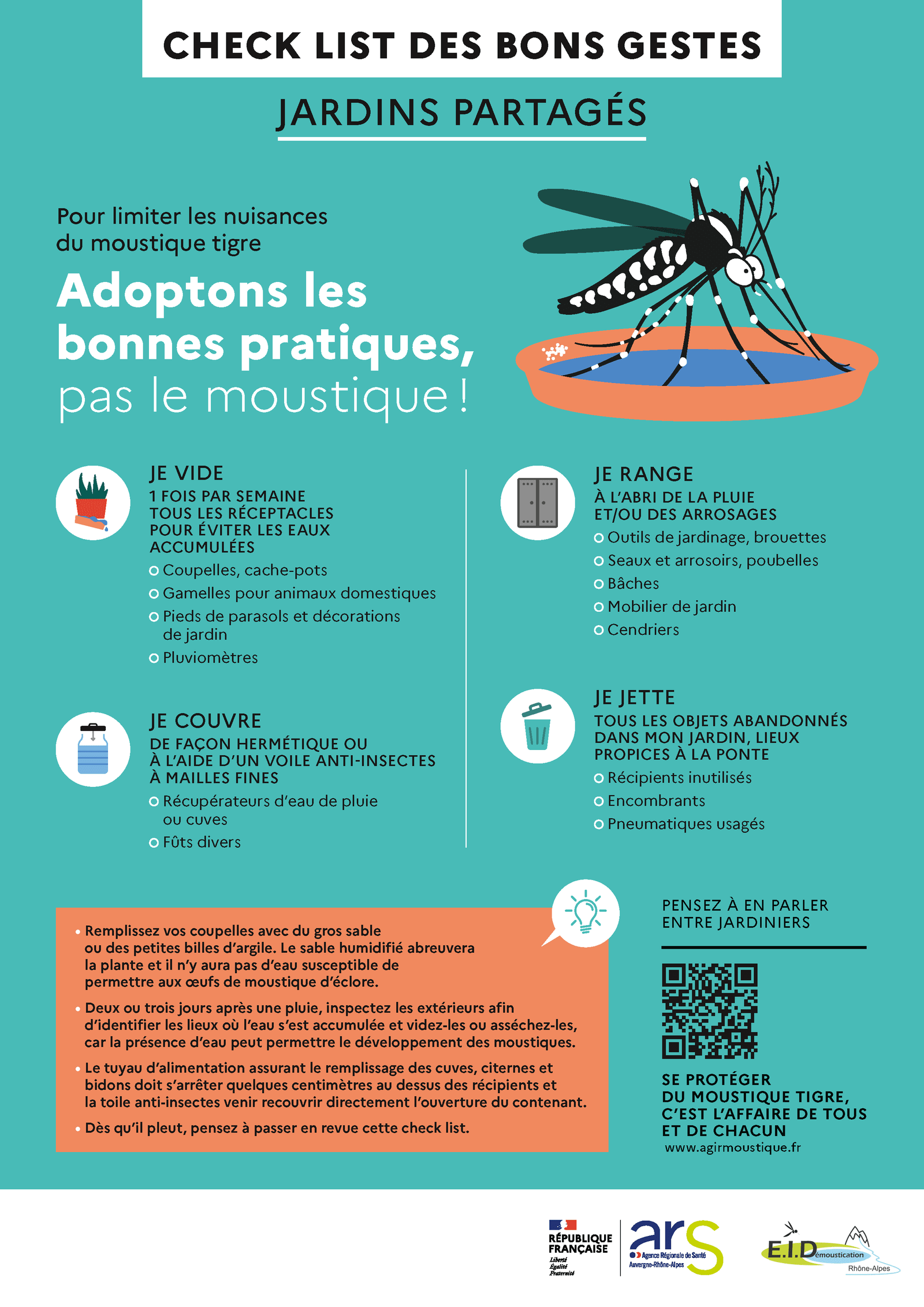 L’Entente Interdépartementale pour la Démoustication est un établissement public chargé de la lutte contre les moustiques et de la gestion des zones humides. Découvrez comment agir chez vous contre leur prolifération :